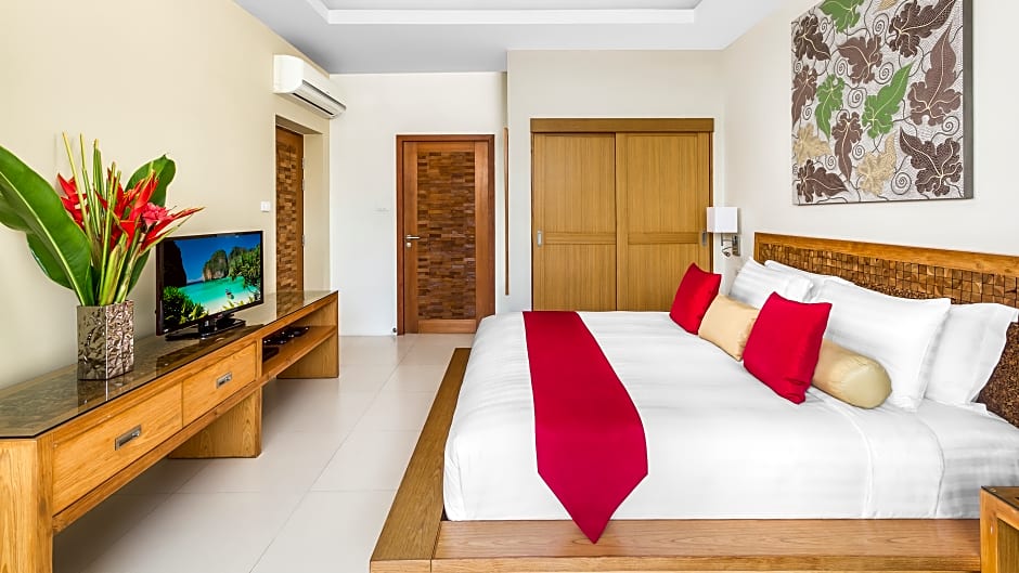 One Bedroom Tropical Pool Villa is 1292 square feet and includes a king-size bed 150-183 width plus satellite tv .