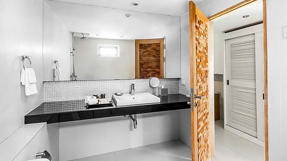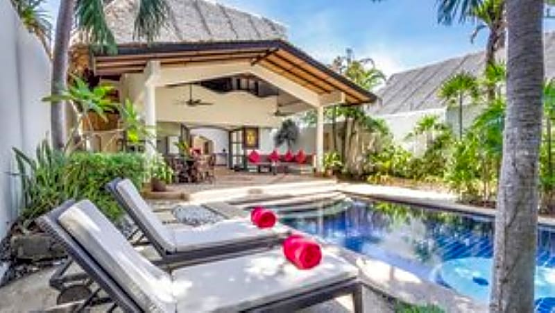 This villa incorporates a spacious outside living, dining and kitchen area, all surrounding a private chemical free infinity edge pool. It features an open-air bathroom and rain shower. Includes a flat-screen TV and iPod docking station.